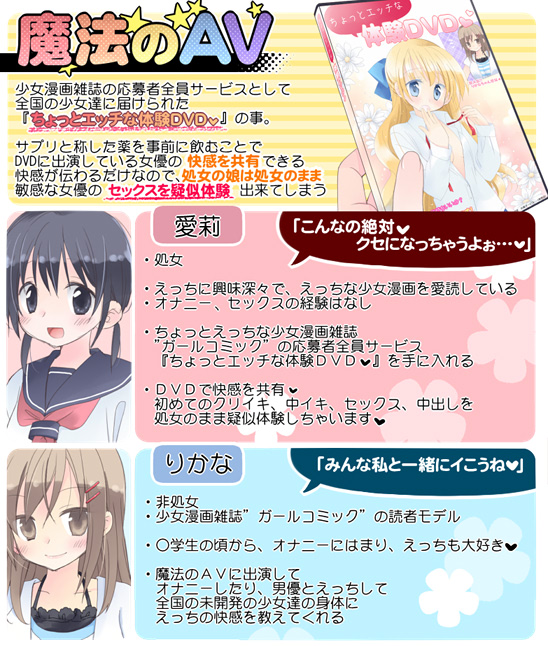 ジャンル: デモ・体験版あり、制服、処女、中出し、オナニー、男性向け、成人向け、魔法